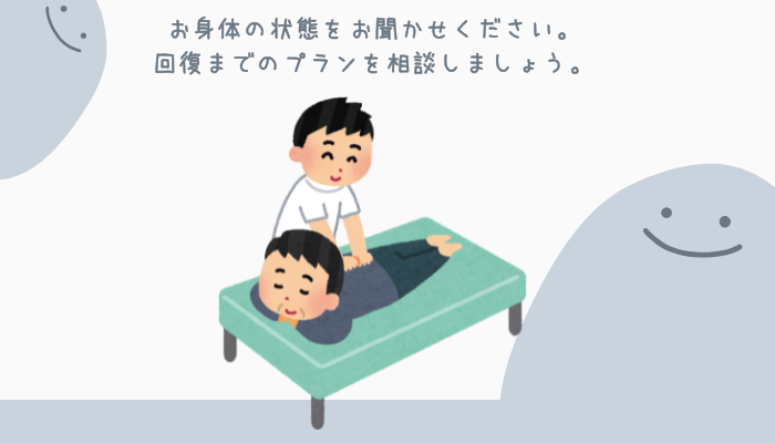 状況をご説明させて頂き、ご納得していただけましたら施術治療を行います。
